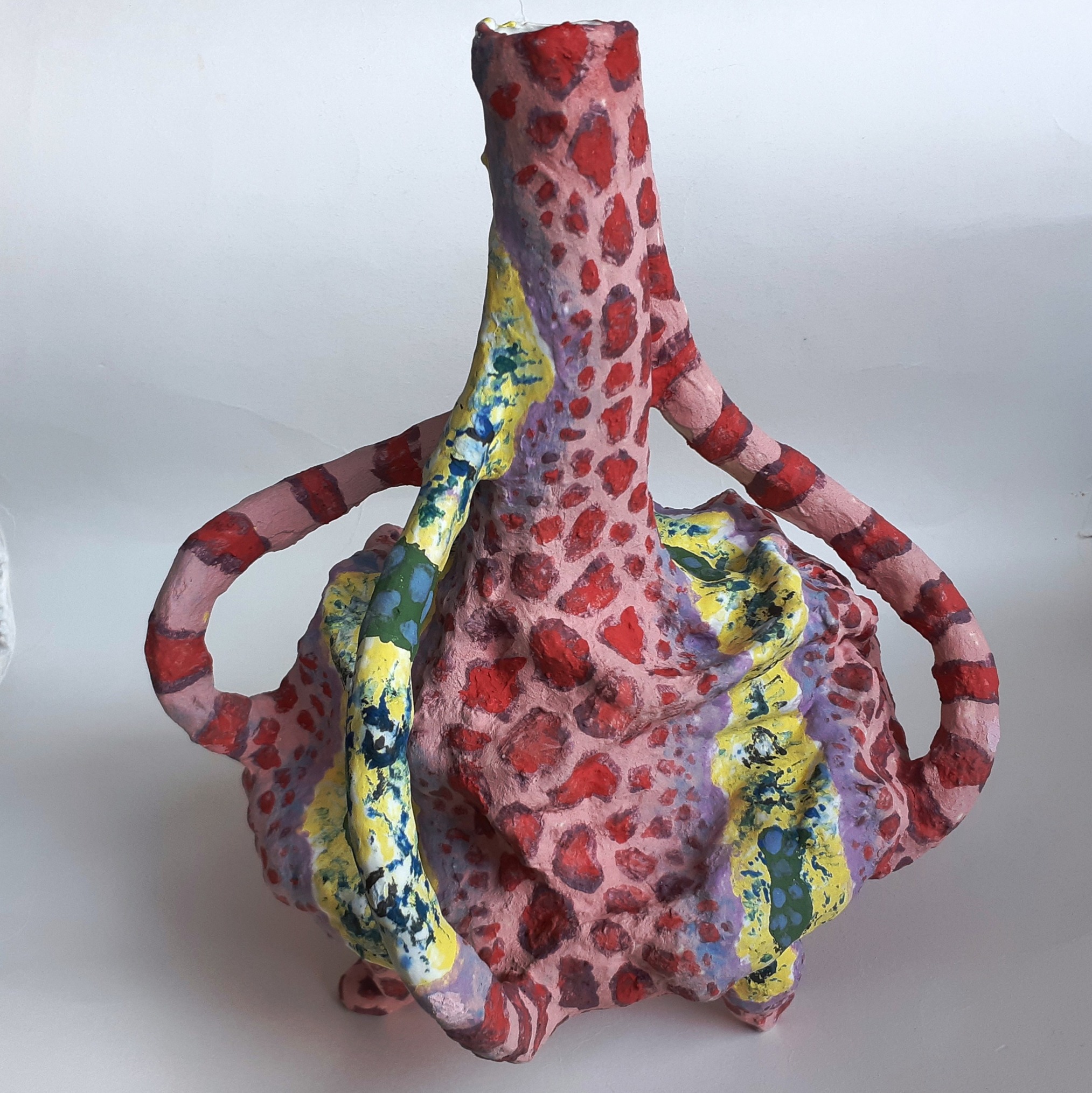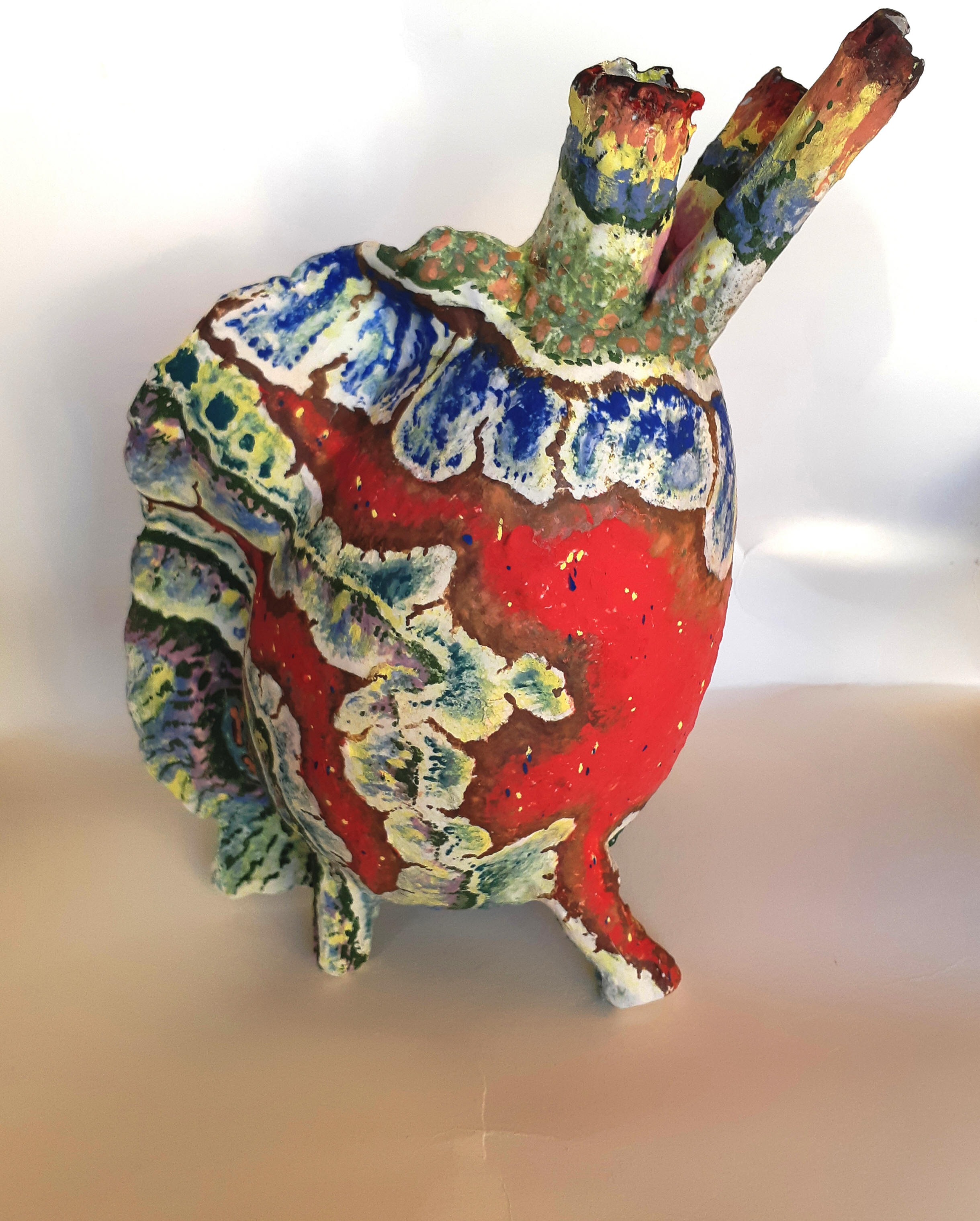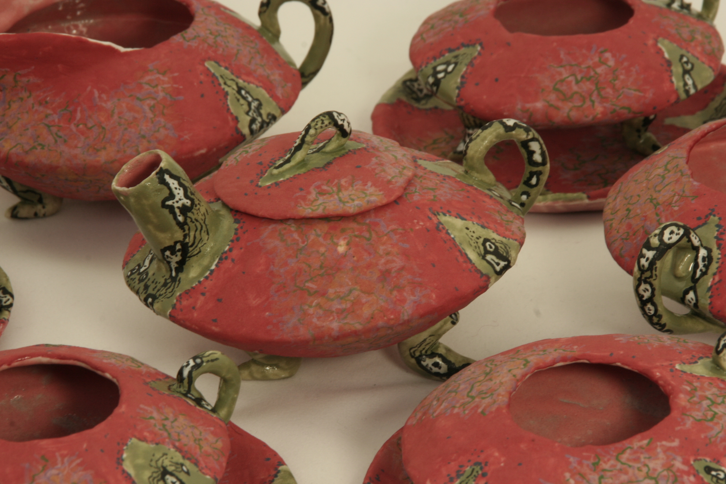 Tegenwoordig maak ik vooral kopjes en vazen. En ook wel sieraden en zelfs schoenen. Uit de kopjes kun je niet drinken, maar die kopjes kunnen wél lopen, dansen, doorzakken en overhangen. En de vazen? Je mag geen water in ze gieten. Ze kunnen wél lopen, staan, rollen, tollen, wankelen en wiebelen. Op de schoenen kun je trouwens ook niet lopen, maar net als de kopjes kunnen de schoenen wel zelf dansen. Al die voorwerpen hebben net als de sieraden maar één functie: ze zijn om naar gekeken te worden, voor de sier.